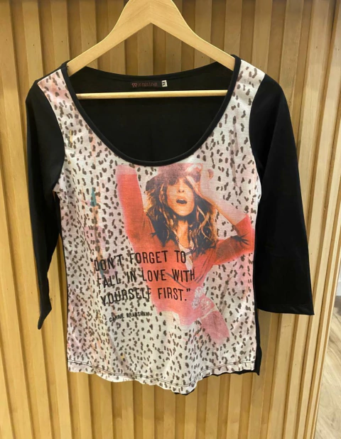 La modelo está usando el talle 1, ella tiene 90 de busto y 70 de cintura.